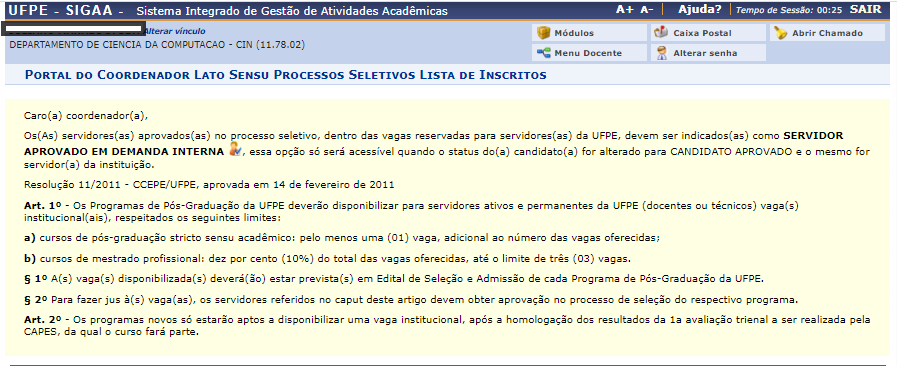 Assunto[SIGAA- Lato Sensu] Cadastrar Discente em Curso | |||