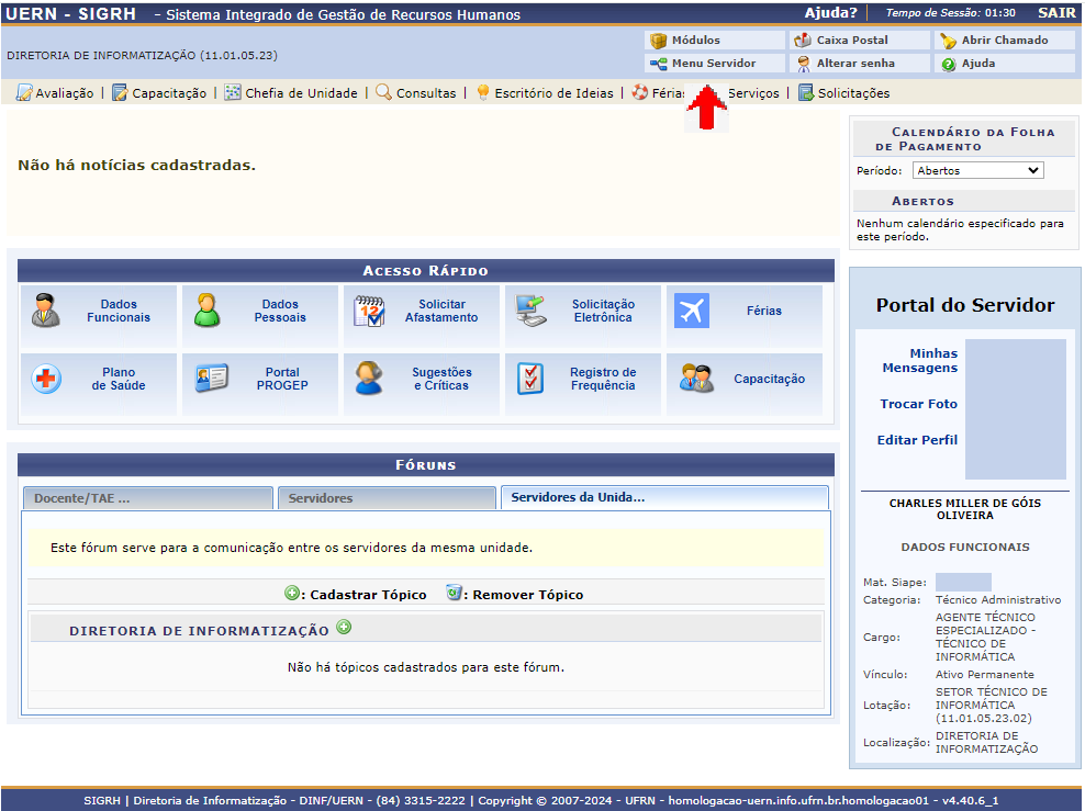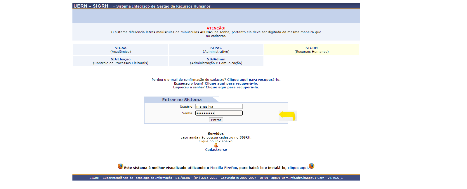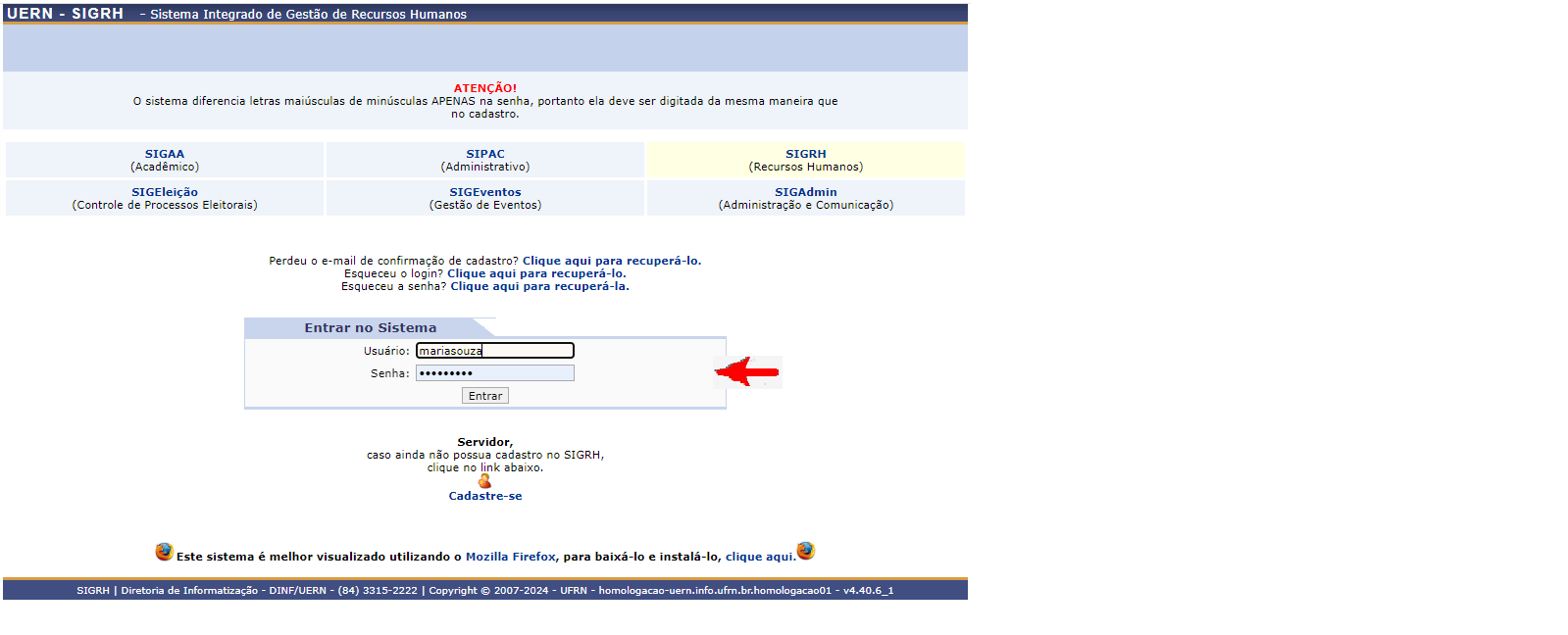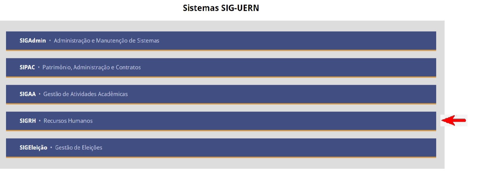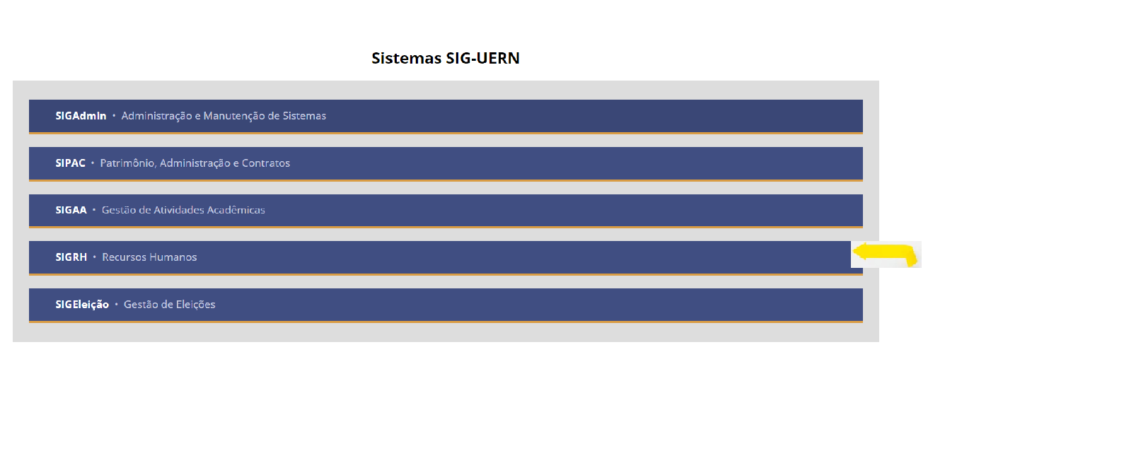 ConteúdoCadastrar 1- Digite na barra de endereços: sistemas.uern.br 2- Clique em SIGRH;