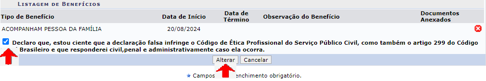 3- Após a alteração de dado ou benefício, o servidor deve marcar novamente a caixinha