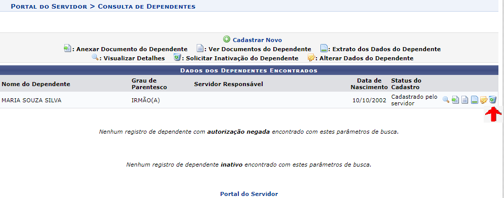 2- Clique no ícone da Lixeira para excluir o dependente desejado;