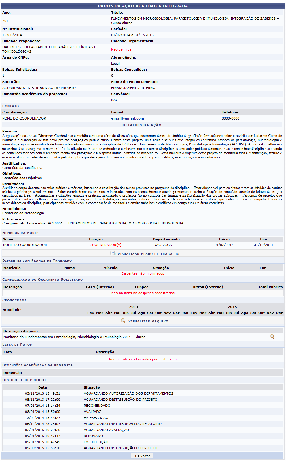 Alterar Distribuição do Projeto de Monitoria Se desejar Alterar uma das distribuições de projeto de monitoria listada, clique neste ícone A explicação a respeito das funções desta tela foram previamente esclarecidas, neste mesmo Para melhor compreensão, alteraremos o Modelo de avaliação para Avaliação. Posterior a modificação