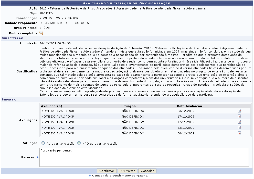 Assunto[SIGAA - EXTENSÃO] Validar Solicitações de Reconsideração CPP | |||