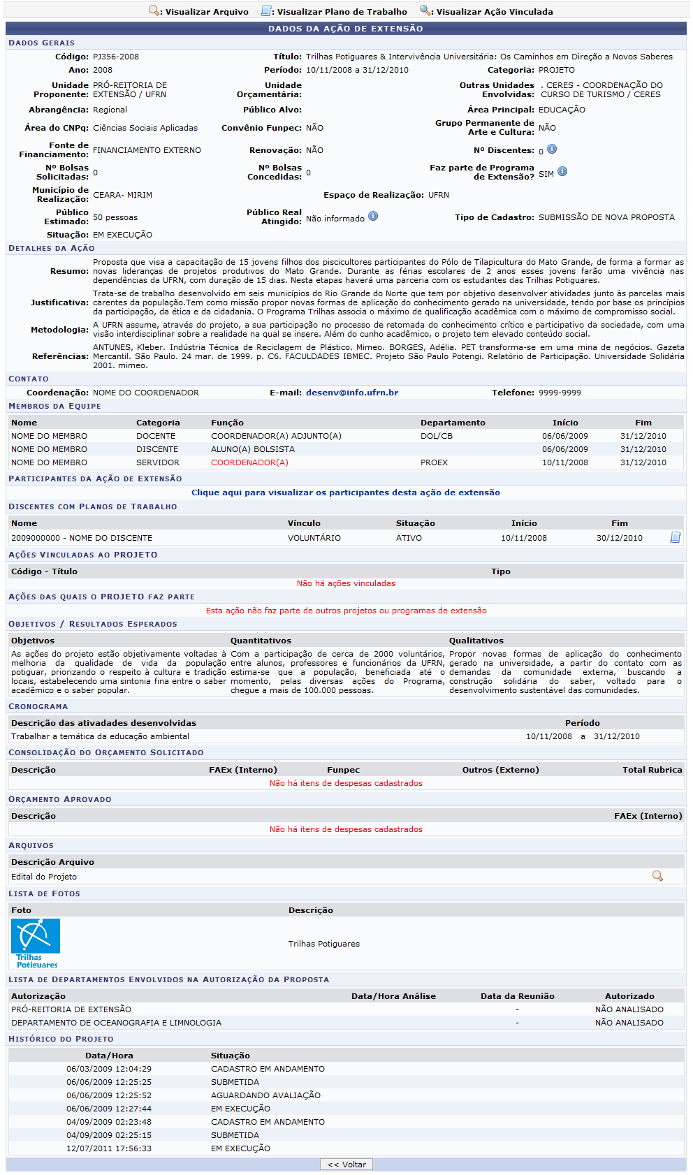 . Exemplificaremos com a ação Trilhas Potiguares &